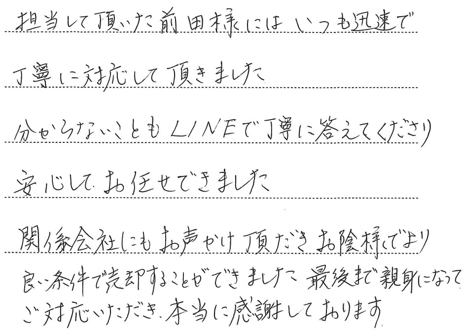 「 分からないこともLINEで丁寧に答えてくださり、安心してお任せできました」
